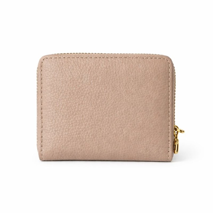 - Portofel bej cu fermoar si spatii pentru carduri, dimensiune 11 x 9 x 5 cm