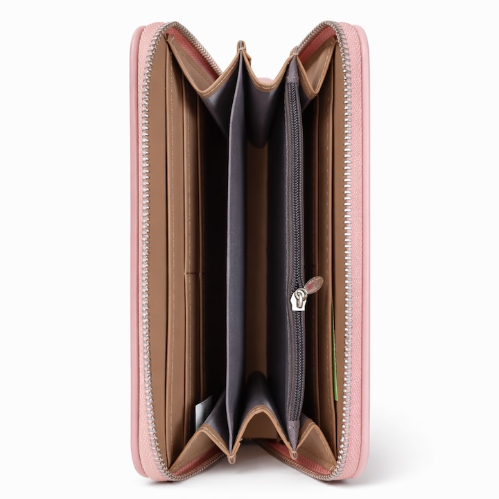 - Portofel lung tip zip-around, spatios, cu compartimente pentru carduri, bancnote si monede, dimensiune 20 x 10 x 3,5 cm