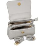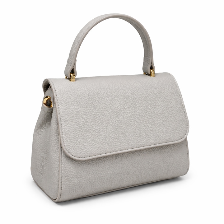 • Geanta de mana eleganta, cu detalii premium si picioruse metalice aurii, dimensiune 25 cm x 15 (fara maner) x 8 cm