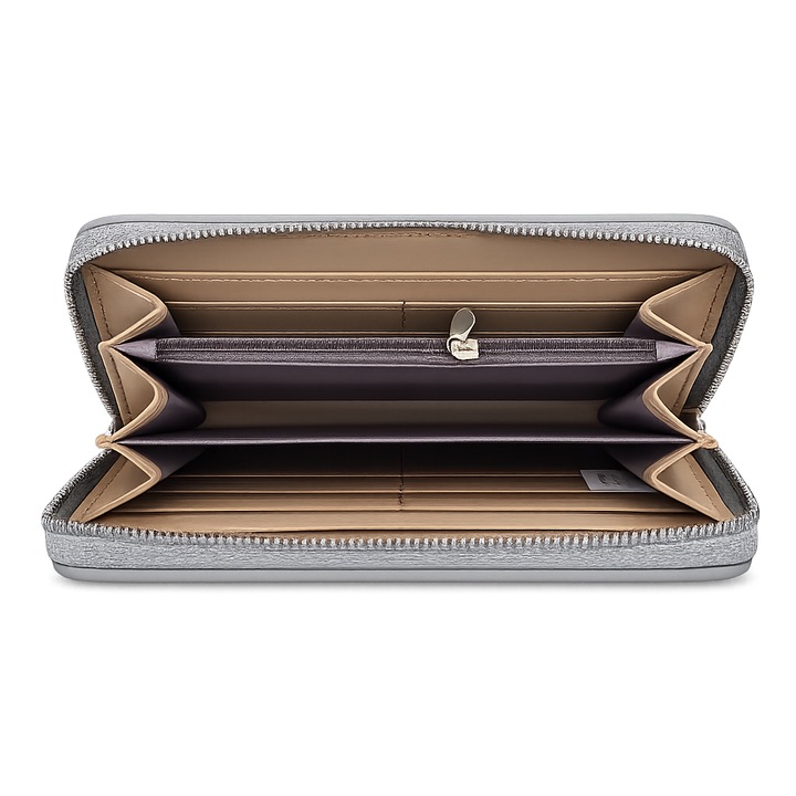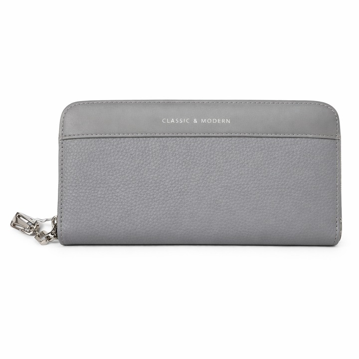 • Portofel lung tip zip-around, spatios, cu compartimente pentru carduri, bancnote si monede, dimensiune 20 x 10 x 3,5 cm