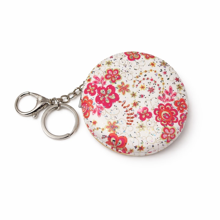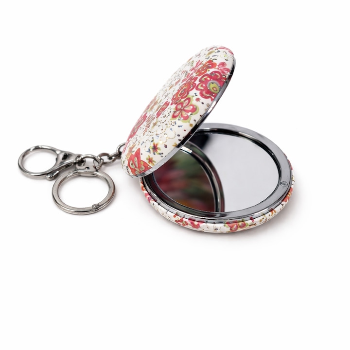 • Oglinda Compacta cu Breloc – Practica si Eleganta Oglinda compacta cu design floral este accesoriul perfect pentru geanta sau chei