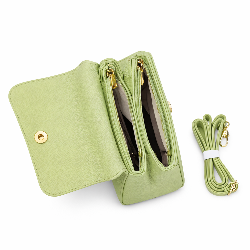 Realizata din material texturat de calitate, in nuanta verde fistic (pistachio), geanta ofera un look modern si feminin. Compartimentarea eficienta o face practica pentru obiectele esentiale.