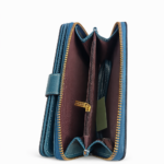 Portofelul inclus este realizat intr-o nuanta eleganta de albastru si dispune de tehnologie RFID, care protejeaza cardurile impotriva scanarilor neautorizate.