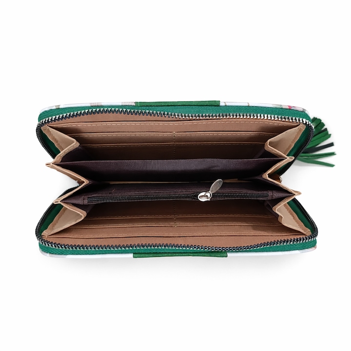 - Portofel lung tip zip-around, spatios, cu compartimente pentru carduri, bancnote si monede, dimensiune 20 x 10 x 3,5 cm